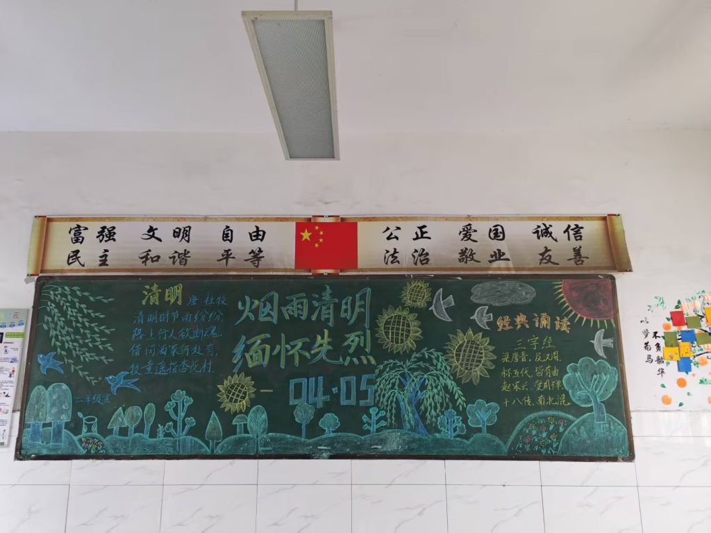 ~ 此外,各班精心制作主题黑板报,以文字、图画相结合的形式,展现革命先烈的英雄气概,营造浓厚的缅怀氛围。学校还组织全体学生观看红色纪录片,通过影像资料重温革命岁月,让学生直观感受革命先辈的坚定信念与无私奉献精神,接受深刻的红色教育洗礼。
