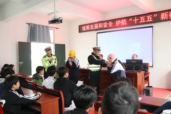 ~ 县交警大队精心挑选了本地典型交通事故视频进行展播,一幕幕因闯红灯、乱穿马路等引发的惨剧,让在场学生深受触动。随后,钟炳辉警官结合视频内容,用通俗易懂的语言讲解交通法规,并现场演示安全过马路、正确佩戴头盔、大货车盲区避让等技能。活动中,还分发了交通安全宣传册页。