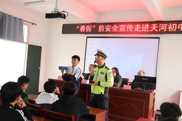 ~ 为增强学生国家安全、交通安全意识,营造平安校园环境,3月31日,定远县政法委联合教体局、交警大队走进天河初中,开展“法润青春 安全护航”为主题安全宣传活动。