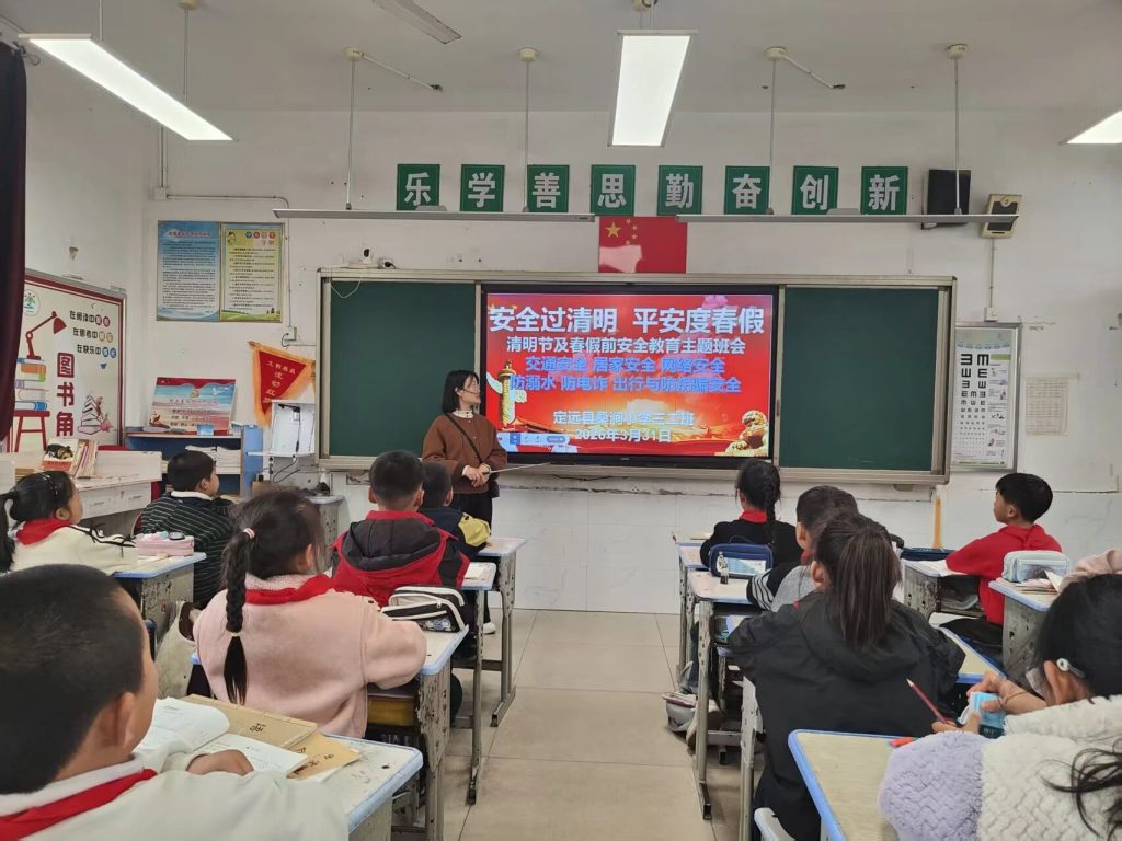 为筑牢学生安全防线,保障师生度过平安祥和的假期,3月31日,定远县桑涧小学组织各班级召开“安全过清明 平安度春假”安全教育主题班会,围绕交通安全、居家安全、网络安全、防溺水、防电诈、出行与防拐骗等核心内容,开展全方位安全知识宣讲。