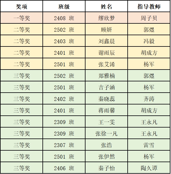 获奖名单