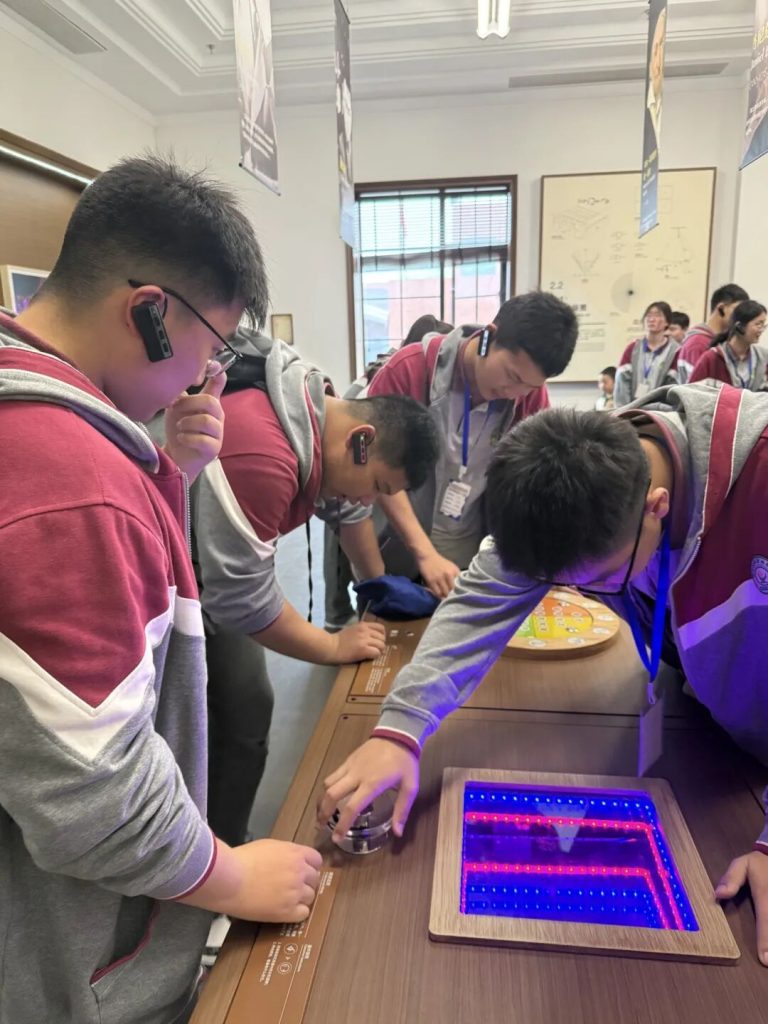~ 抵达合肥科学岛现代科技馆,学子们正式开启科技探索之旅。在专业讲解与耳麦辅助下,大家有序参观场馆,近距离接触前沿科技成果,随后投入两场趣味实验课程,沉浸式感受科学的神奇与魅力。