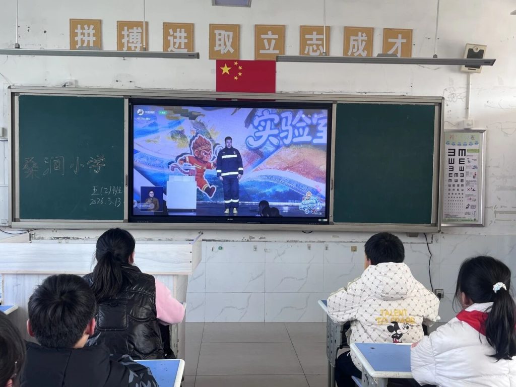 3月13日15时,教育部、国家消防救援局主办的2026年春季全国中小学消防安全公开课正式开播。定远县桑涧小学积极组织全体师生集中观看直播,同步开展消防安全学习教育活动。 火…