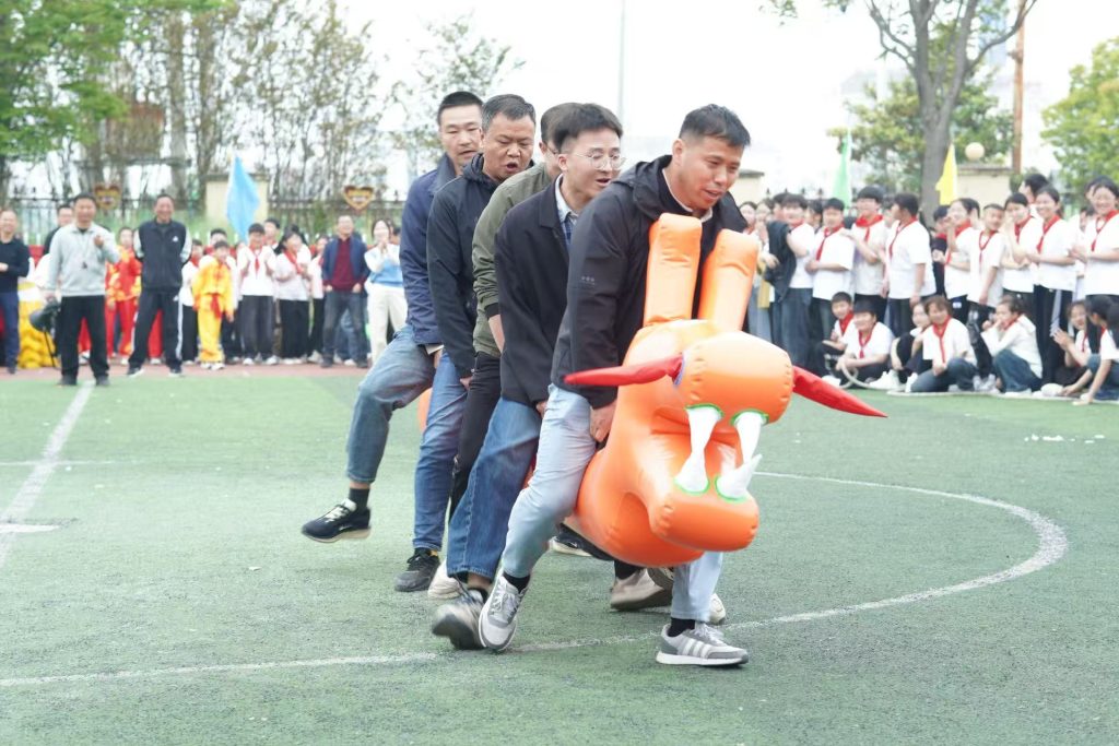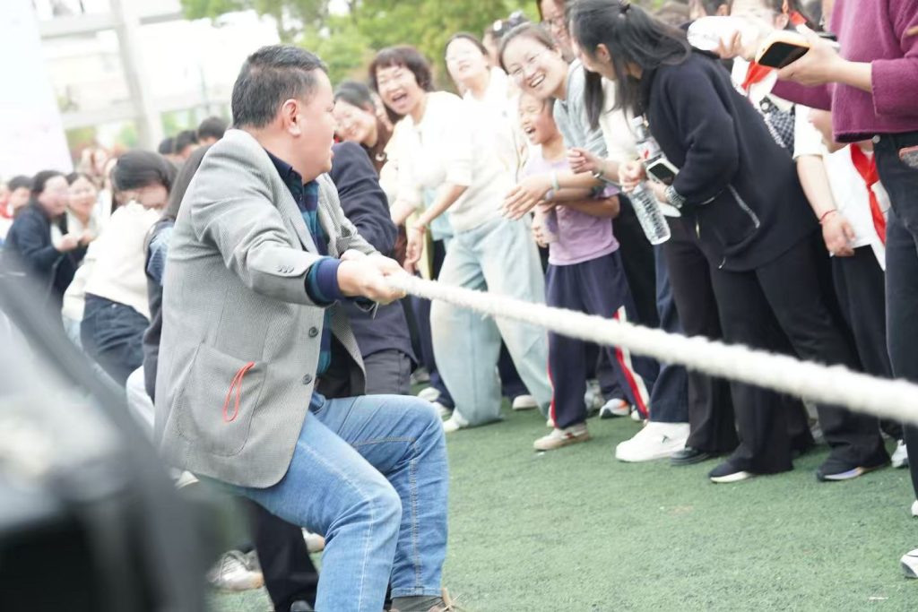 ~ 本次运动会特别设置教职工趣味赛事,手拉手呼啦圈接力、旱地龙舟、筷子夹乒乓球接力、教职工拔河等项目欢乐开赛。老师们放下粉笔、走上赛场,身姿矫健、配合默契,在欢声笑语中尽显风采,拉近了师生距离,为运动会增添了别样温暖与活力。