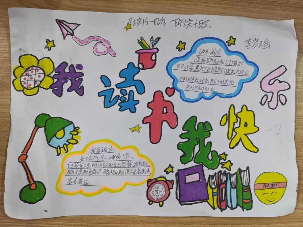 ~ 同时,学校针对不同学段学生特点,开展个性化阅读实践活动。低年级学生以动手创作为主,开展读书手抄报制作活动。孩子们用五彩的画笔、工整的文字,精心绘制出一幅幅充满童趣的读书手抄报,将自己喜爱的书中故事、读书感悟、名人名言融入其中,展现出对阅读的无限热爱。中高年级学生则围绕主题开展读书征文活动,同学们提笔书写阅读收获、书中感悟,用文字记录与好书相伴的美好时光,在写作中深化阅读理解,提升文学素养。