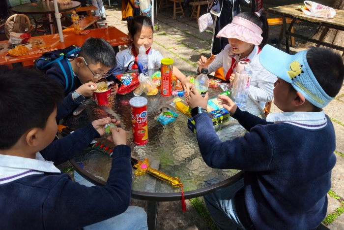 ~ 上午九时许,同学们陆续顺利抵达研学目的地滁州琅琊山风景区。春光明媚,微风徐徐,面对景色秀美、人文底蕴深厚的琅琊名胜古迹,同学们欣喜不已,兴奋不已。步入琅琊山,茂林修竹、清泉潺潺,课本里“环滁皆山也”的绝美意境映入眼帘。大家沿着古道漫步,先后探访“天下第一亭”的醉翁亭、琅琊山摩崖石刻、同乐园、野芳园、琅琊寺等景点,在实景中感受山水之美,领略滁州独有的人文风光。跟班老师用浅显易懂的语言,讲述琅琊山的人文故事与自然知识,孩子们穿梭于亭台楼阁之间,探寻山间的文化印记,既放松了身心,又将课本知识与实景相结合,真正实现了“读万卷书,行万里路”的研学目的。最后,攀登南天门是终极考验。尽管山路蜿蜒崎岖陡峭,但永乐学子不畏困难,相互鼓励扶持、步伐稳健,努力向上攀登,不轻言放弃,关关难过关关过。中午,美食分享时光如约而至,大家围坐在一起,互相分享美味,传递快乐,成了研学路上最接地气的“烟火课堂”。
