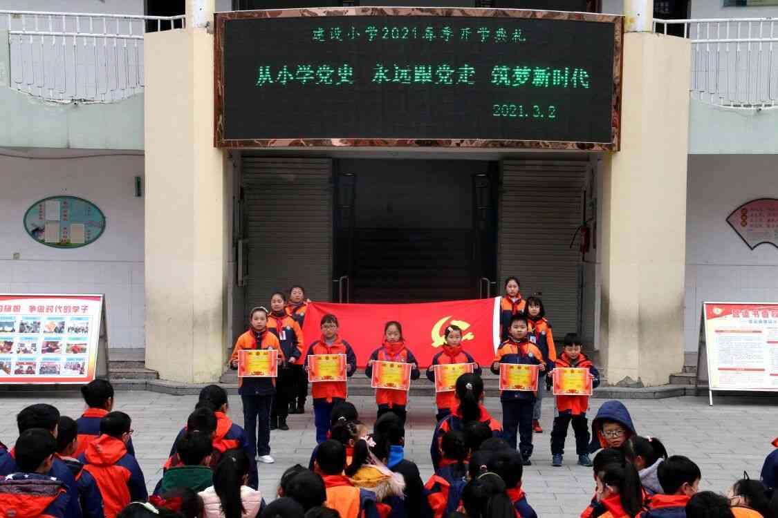~ 在庄严的国歌声中,建设小学开学典礼拉开帷幕。建设小学副校长陆茜领学了中国共产党走过的光辉历程。建设小学校长冯军熙致词,希望同学们做一个讲文明、讲卫生、懂礼貌、有孝心、宽容谦让、个性鲜明的学生,要求同学们做一个德才兼备、品学兼优的学生,倡导同学们参加“快乐读书吧”,吸取丰富的精神食粮,积极参加各类艺术、体育、科学活动,提高自己的各项技能。建设小学表彰了在“文明创建”活动中6个优秀中队。