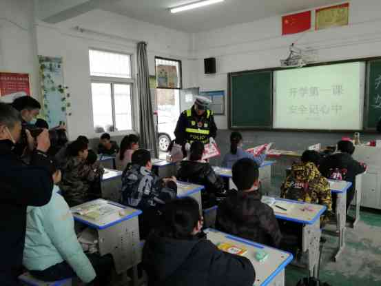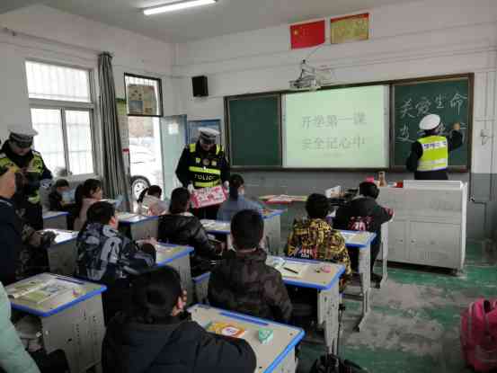 为进一步加强学生交通安全意识,预防事故的发生,3月2日,定远县交警大队杨建国队长一行六人来到岱山学校,为孩子们带来了一堂有趣、生动的交通安全课。