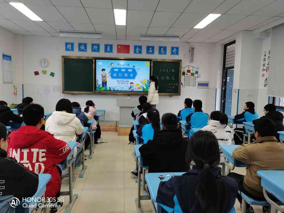 ~ 诚信是中华民族的传统美德,是社会公民素质的重要体现。老师围绕诚信教育的重要性,用典型案例,幽默风趣地讲解了诚信对社会以及个人的作用,引导学生争做 “讲诚信的中华好少年”,共同营造诚信校园氛围。同学们深切感受到社会需要诚信,人们呼唤诚信,诚信的种子会在每一位学生心中生根发芽,相信同学们会从自身做起,以诚信为本,遵守校规校纪,诚信学习,诚信做人。