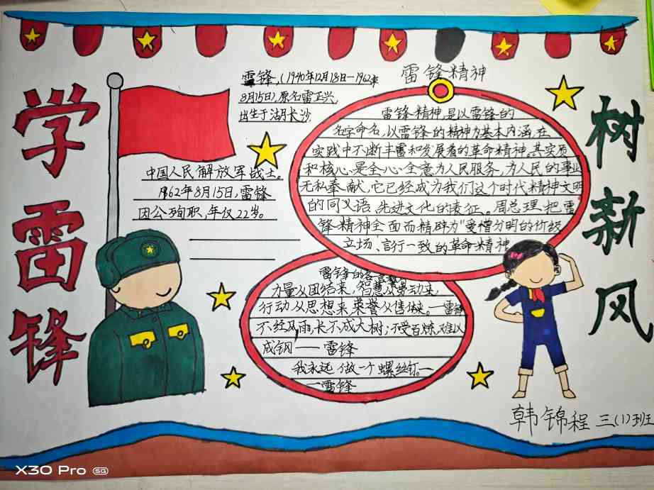 亲爱的队员们,雷锋叔叔是我们心中的偶像,雷锋叔叔是我们学习的楷模,雷锋精神给我们指明了前进的方向,我们要从身边做起,从小事做起,学习他“挤”和“钻”的钉子精神,做一名珍惜时间、勤奋学习的好队员;学习他严格自律、追求卓越的进取精神,做一名文明守纪、乐于助人的新时代小雷锋!(解放小学 沈媛慧 供稿)