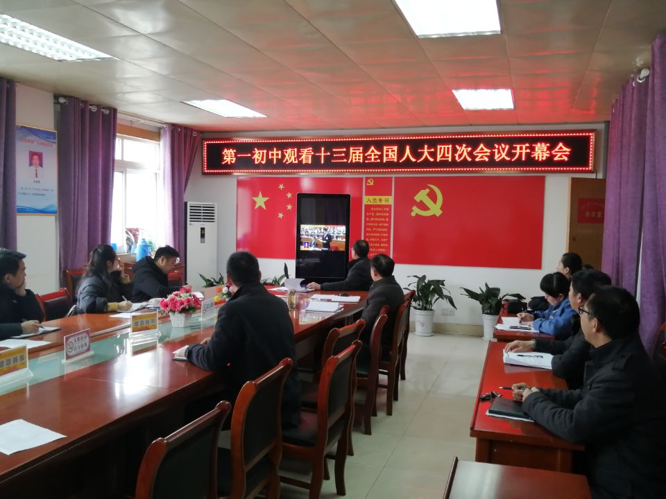 ~ 3月5日,十三届全国人民代表大会四次会议在北京人民大会堂隆重开幕。在定远县第一初中支部远教党员活动室站点,支部书记、校长张书清,全体支部委员、党小组长以及部分党员教师精神振奋,满怀喜悦和期待,认真收看了开幕会盛况,热议政府工作报告。