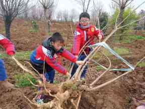 ~ 经过一上午的劳动,几百株小树苗在美心生态园林上沐浴春光、迎风挺立,成为荒山坡上最靓丽的色彩。