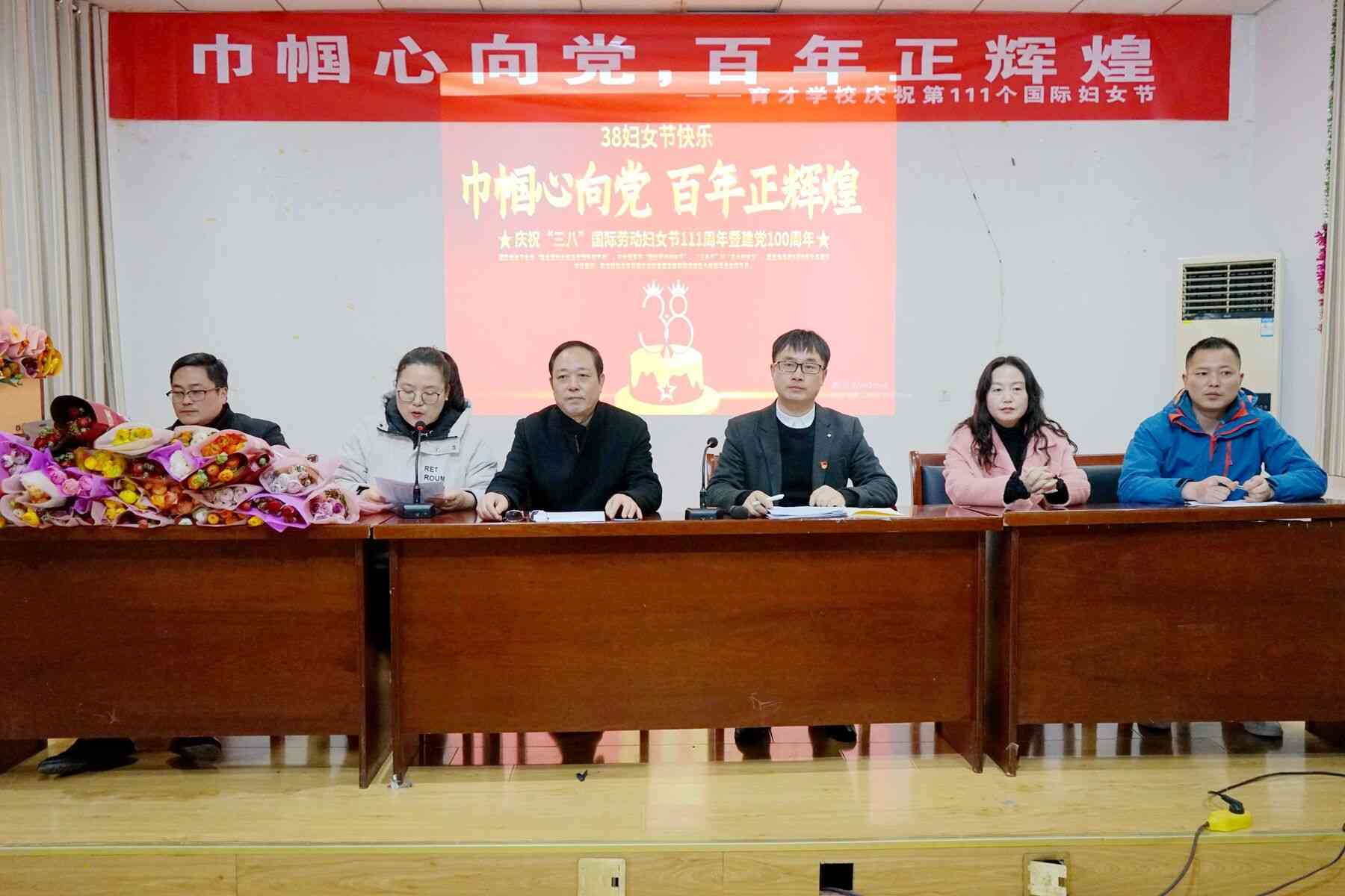 庆祝大会上,育才学校副校长倪有华代表校长室向女教职工致以节日的问候和美好的祝福!倪校长说,育才学校女教职工在教育、教学和管理服务等岗位上踏实工作、敬业奉献,取得了突出的成绩,为学校发展作出了重要贡献,取得了令人振奋的好成绩。育才学校的发展离不开女教职工的努力和付出,祝所有女教职工节日快乐!党支部书记马培培作总结讲话。他说,在党支部的带领下,育才学校女教职工弘扬“自尊、自信、自立、自强”的精神,勇于争先、勤于奋斗,充分发挥 “半边天”的作用,她们一心扑在班级工作上。学校的4名女党员教职工更是发扬巾帼不让须眉的精神,时刻冲在教育教学管理的第一线,发挥了党员的模范带头作用,希望她们积极投身新时代、奋力实现新作为,把奋斗融入岗位、融入日常,在追梦圆梦的征程上绽放芳华、收获精彩,在学校发展、家庭和谐、社会文明等方面发挥的更大的作用。