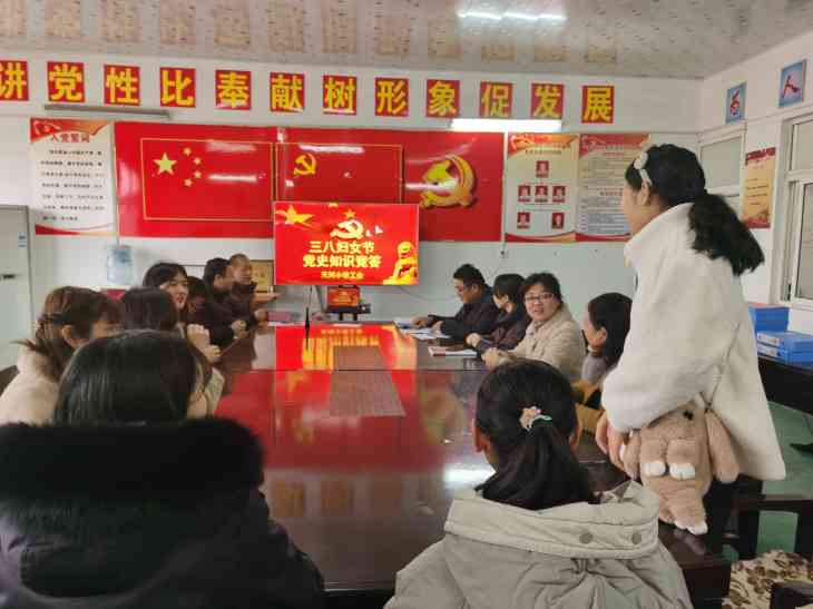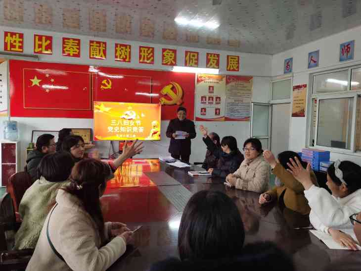 ~ 3月8日,定远县天河小学党支部与工会联合在会议室组织全体女教师开展一场生动活泼的庆三八党史知识竞赛活动。
