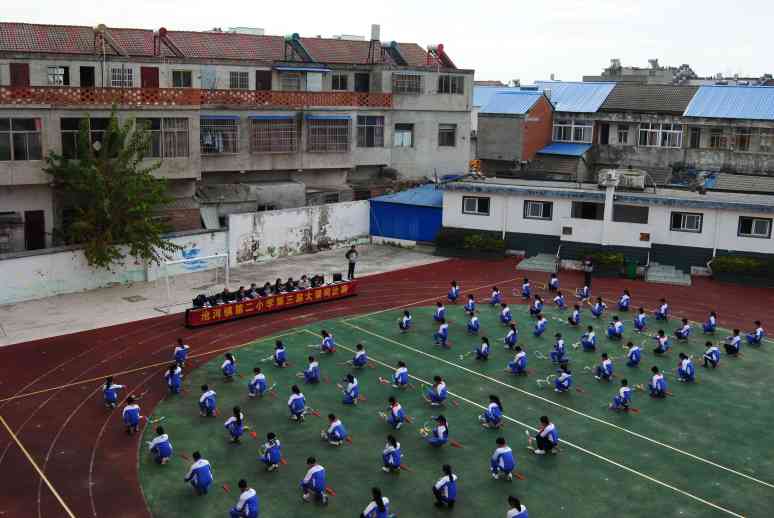 张道胜校长发表了热情洋溢的讲话,对所有参赛班级提出了具体的要求和热切的期望,希望比赛中各班努力发挥,赛出风格,赛出水平。 此次大课间比赛采用分年级评比、全班学生组队参加,按照从低年级到高年级的顺序进行,参赛内容由“第九套广播体操、功夫扇、彩带舞三部分组成。各班自选1名领队,其余学生组成方队。比赛活动中,全体学生精神饱满,服装整齐,步伐一致,口号响亮,动作有力,整个校园都充满了青春的活力,充分展示了池河二小学生精神风貌。