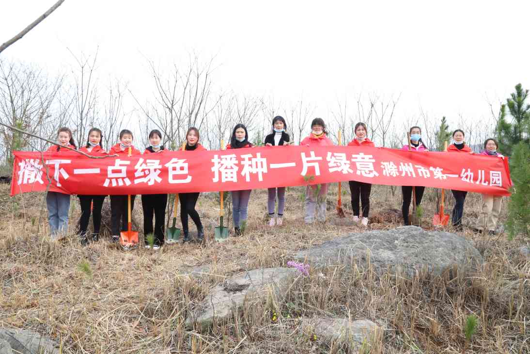 ~ 幼儿园根据孩子们的特点,分别开展了“给小树挂牌”“与小树合影”“为小树代言”“学唱植树节儿歌”等系列活动,孩子们用自己力所能及的方式主动参与植树节的相关活动,积极与环境“对话”,亲身体验劳动的乐趣,感受美化环境的意义。与此同时,滁州市第一幼儿园积极组织教师志愿者开展植树活动,用实际行动植绿护绿,营造“爱绿、植绿、护绿”的文明新风,践行绿色发展理念。