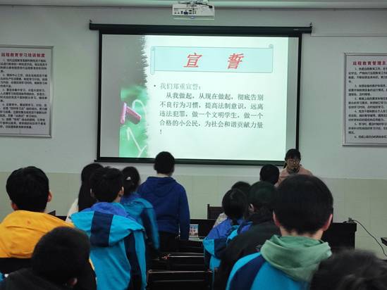 练铺学校安全办负责人向全体参加讲座的留守儿童们分别从青少年违法犯罪、如何做遵纪守法的小公民等方面知识进行了深入细致的讲解;最后在老师的带领下全体留守儿童郑重宣誓:从我做起,从现在做起,彻底告别不良习惯,提高法治意识,远离违法犯罪,做一个文明学生,做一个合格的小公民,为社会和谐贡献力量!(图文:张勇勇 审核:高付兵)