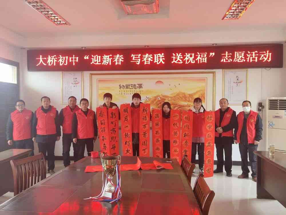 2月10日,定远县大桥初中组织师生书法志愿者开展了“迎新春、写春联、送祝福”志愿服务活动。