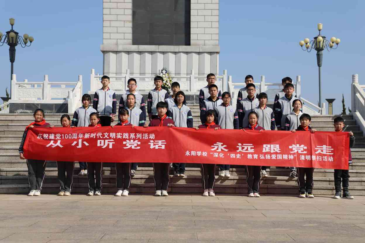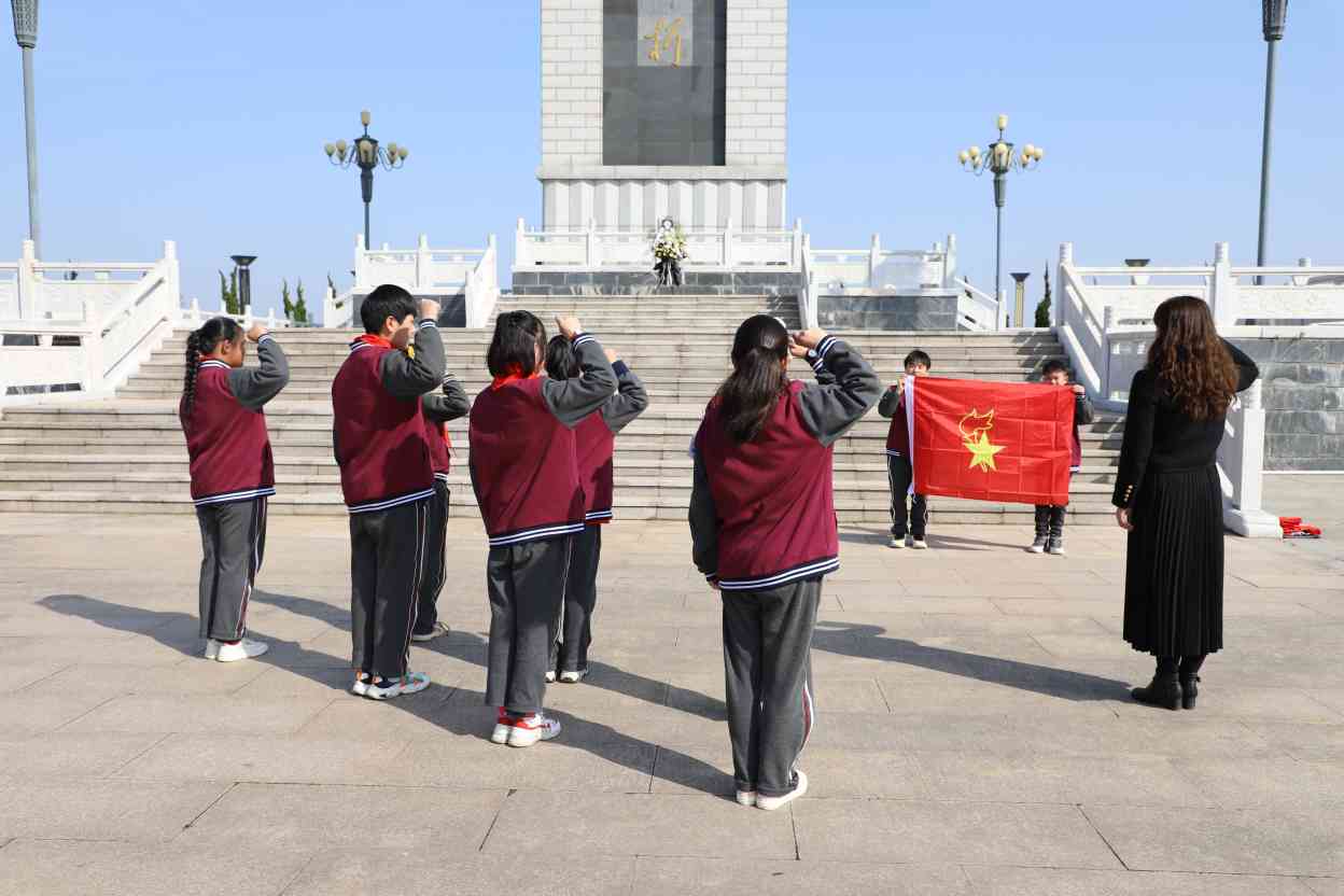 ~ 缅怀英烈忆峥嵘,砥砺奋进铸辉煌。通过本次清明祭扫活动,给学生们上了一堂深刻的革命传统教育和爱国主义教育的实践课,加深了他们对爱国主义精神的进一步认识,懂得了幸福生活的来之不易,唤醒他们奋发图强的意识,激发他们树立自尊、自信、自强、自立的远大理想和争做新时代好少年的决心。(吕浩敏 王芳 )