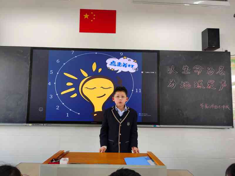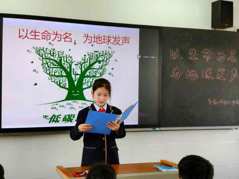 二、由潘敏娜同学宣读“以生命为名,为地球发声”活动倡议书,呼吁全校师生在当天20:30-21:30熄灭家庭中一些不必要的照明,拔掉电脑、手机充电器等一些不必要的电源,关闭空调、电视等一些大功率电器,响应环保号召。