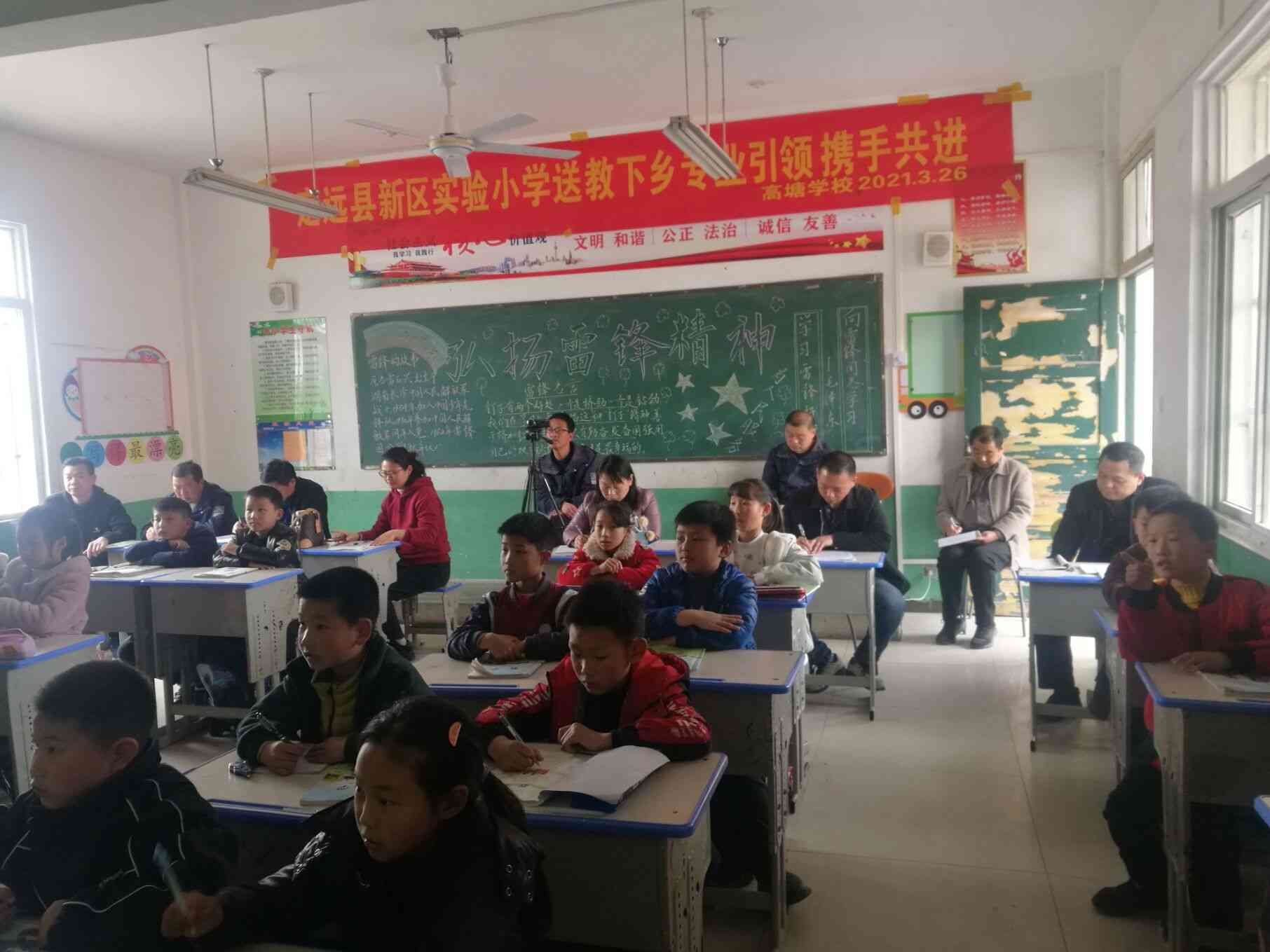 3月26日,定远县新区实验小学周伟伟、刘爱君两位老师来到高塘学校,分别在三年级和五年级进行了数学和英语示范课教学,课后进行了教学研讨。