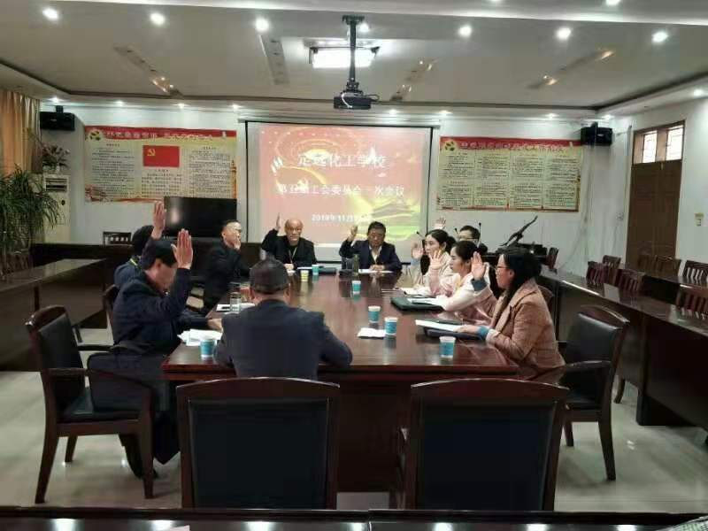 11月23日,定远化工学校第五届工会代表大会在综合楼一楼会议室召开,大会成功进行了新一届工会委员会的换届选举。校党委委员、副校长王传文主持会议。校领导班子成员在内的70名工会会员代表参加了大会。