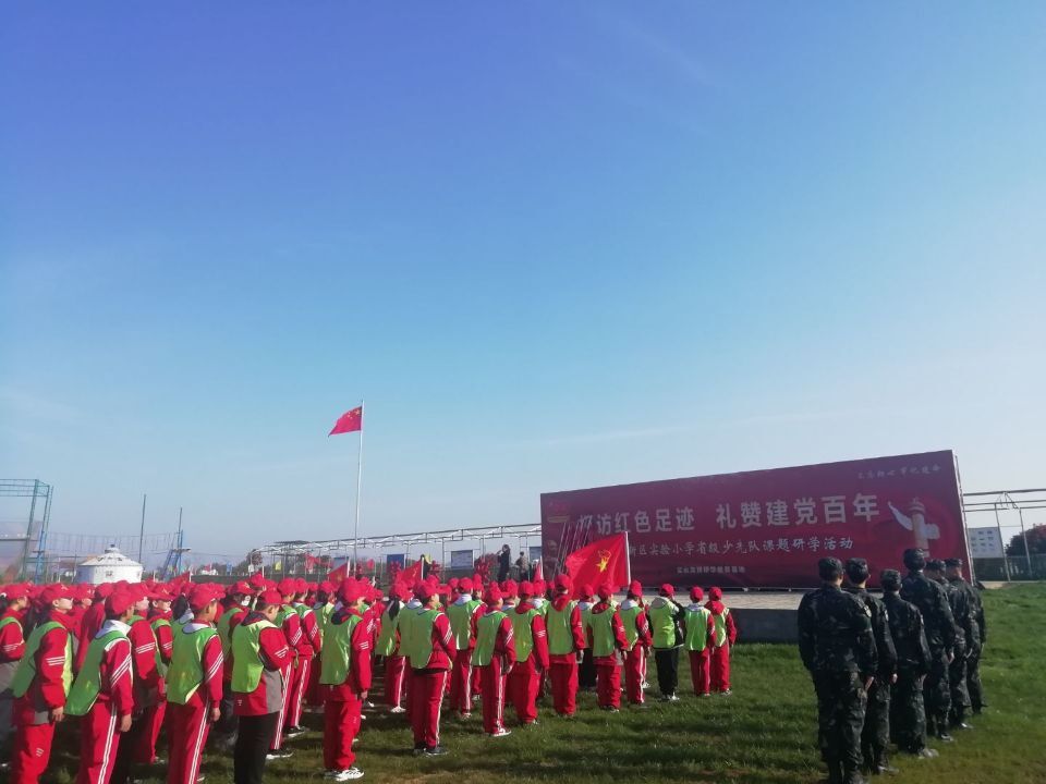 三月杨柳吐翠,大雁北归,溪水流潺,万物复苏,队员们戴上鲜艳的红领巾,擎着飘扬的旗帜,排着整齐的队伍,带着激动的心情,踏上了本次红色研学之路。到达目的地——定远县龙旭研学教育基地后,队员们换上军装,建立连队,选举连长,取好队名,练好口号,正式开始活动。每个连队都斗志昂扬,每个队员脸上都透露着必胜的信心,大家一起在拓展活动中回顾党史,了解红色文化。队员们还在农户的带领下拿起镰刀举起锄头,体会农民耕耘生活的艰辛,感悟劳动的价值。午餐时,队员们合作动手打饭打菜,亲身体验乡村生活,忆苦思甜,感受美好生活的来之不易。队员们最后徒步五公里,重走“红军长征路”,体会那段岁月的艰苦和革命胜利的不易。