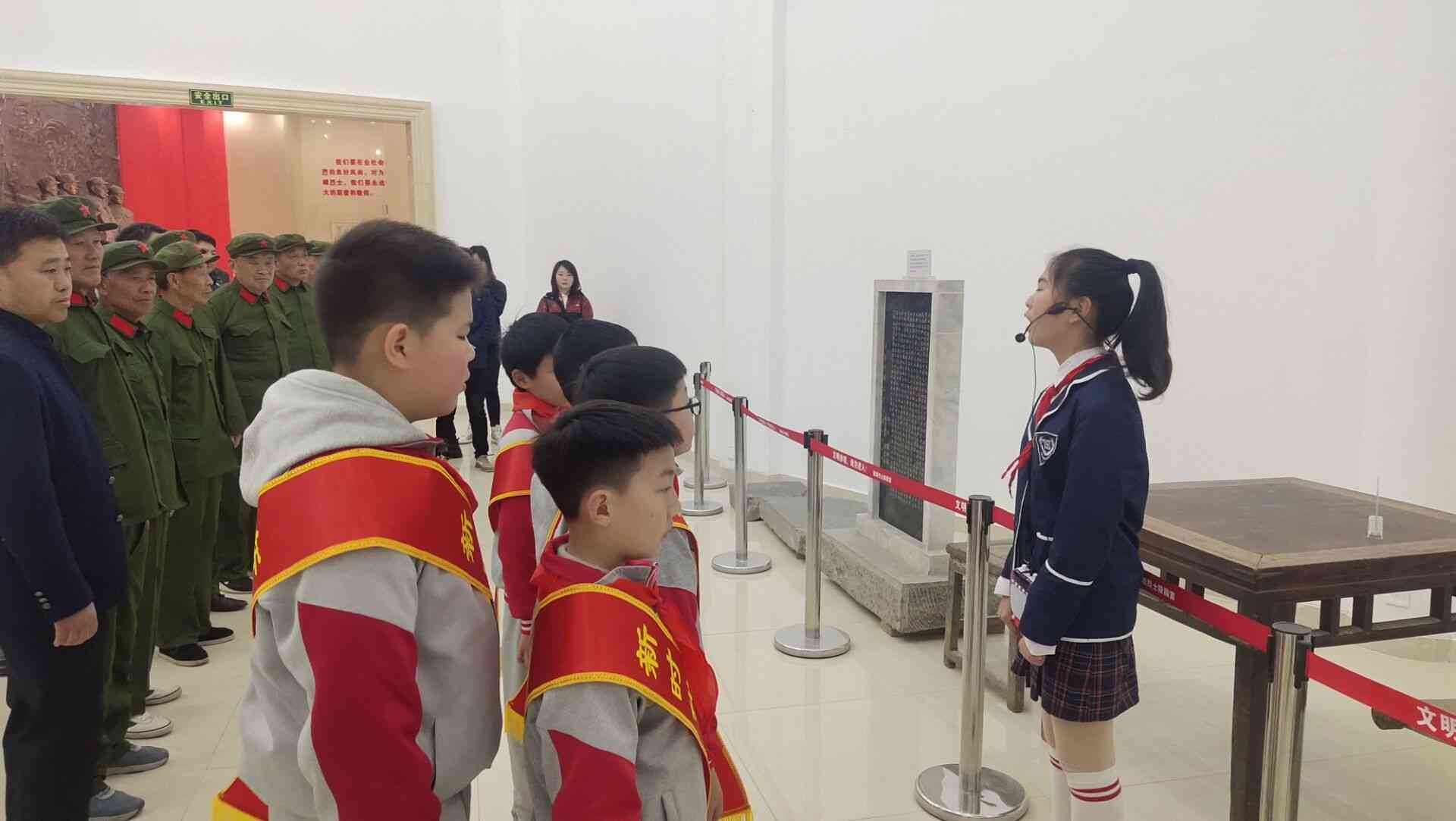 ~ 上午9时,活动正式开始。现场国歌响起,全体人员默哀。接着,严明友老战士讲述革命历史,为现场全体人员上了一堂生动的党课,少先队员们认真聆听,一同重温历史,缅怀烈士功绩。接下来,全体少先队员深情献唱少年先锋队队歌《我们是共产主义接班人》,嘹亮的歌声唱出了孩子们对革命先烈的崇敬和继承先辈遗志的决心。伴着《鲜花曲》的旋律,少先队员们缓步拾阶而上,环绕纪念碑一周,一一向革命烈士献花,并怀着敬仰之心向革命烈士默哀。最后,大队辅导员带领少先队员们走进藕塘烈士纪念馆,仔细聆听该校小讲解员们叙说历史和英雄事迹。同学们心潮澎湃,用最崇高的敬意缅怀革命烈士。(图文:赵悦 审核:罗培齐)