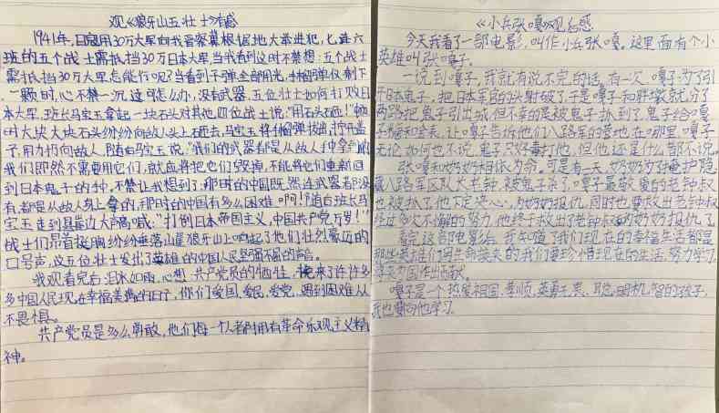 ~ 观影结束后,全体队员就所学、所看、所悟、所想,撰写了观后感,队员们通过文字表达了对革命先辈的崇敬之情和缅怀之意。决心要发扬革命传统,学习革命先辈们的献身精神;决心要牢记历史,不忘初心。