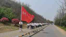 全体党员、少先队员排着整齐的队伍从学校步行出发