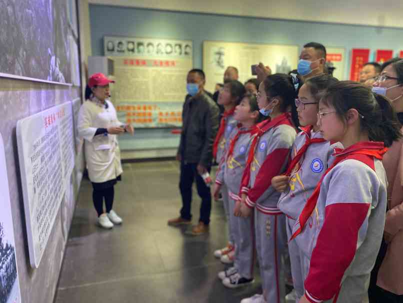 ~ 随后,在讲解员的引导下,全体党员及少先队员怀着崇敬的心情,步入纪念馆展厅参观。