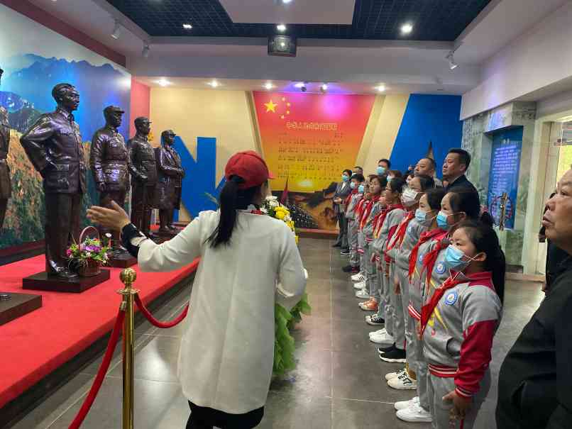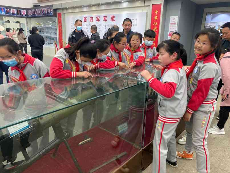 ~ 在新四军纪念馆广场前,举行了庄严的祭英烈仪式, 通过祭扫、献花和诵读以及重温入队誓词的环节,表达对英烈的悼念和追思,理解“红领巾代表红旗的一角,是革命先烈的鲜血染成”的深刻含义,理解中国少年先锋队以“先锋”命名就是学先锋、做先锋的内在意义,引导少先队员继承红色基因,培育报国志向。