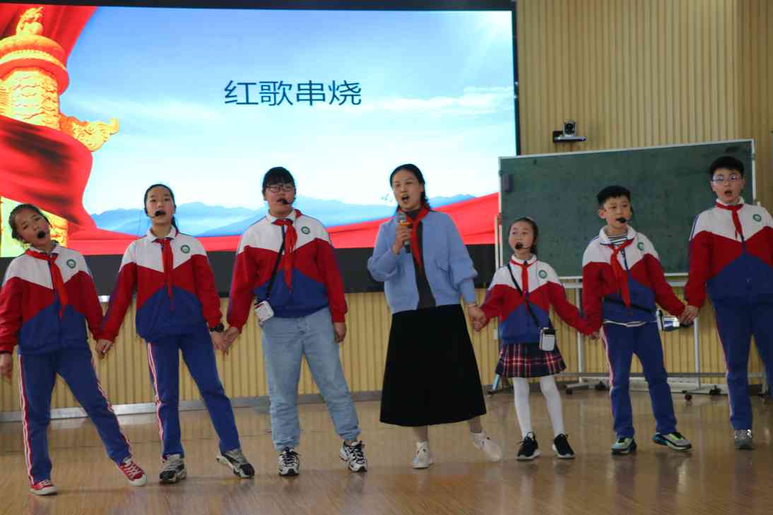 ~ 听了烈士们的英雄事迹,队员们的心中是不是又多了几分钦佩与感动,先烈们用自己的鲜血和生命谱写了一曲曲人生的赞歌,老师和队员们带来的《红歌串烧》和队员们真情表演的舞蹈《闪闪的红星》让大家打开了记忆的闸门:我们不会忘记,枪林弹雨中冲锋陷阵,严刑拷打下赤胆忠诚的先烈和英雄们,他们的精神如同天上的星星永远闪耀。