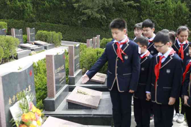 图:参加清明祭扫活动的是“新时代好少年”、“小军属”以及党员代表