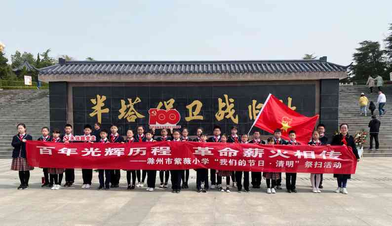 ~ 3月30日,中国少年先锋队滁州市紫薇小学大队组织队员开展“百年光辉历程 革命薪火相传”清明祭扫烈士陵园活动。赴“半塔保卫战旧址”进行祭扫活动的是来自四五年级的“新时代好少年”、部分“小军属”以及党员代表。