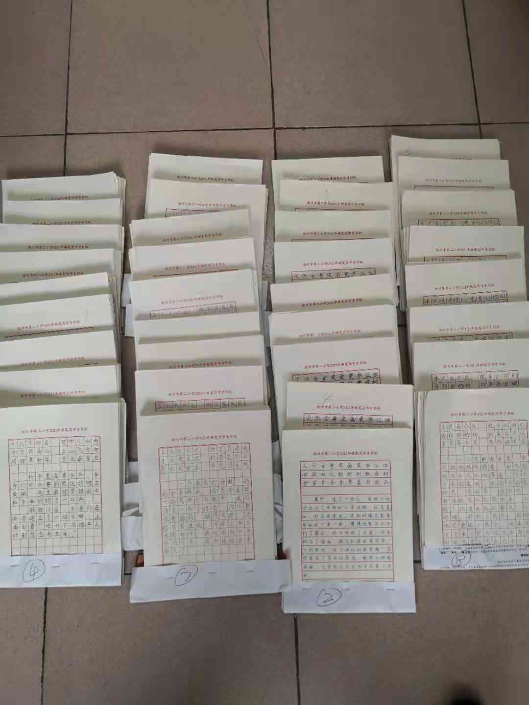 ~ 赛后,由学校教务处、教科室语文老师组成的评审团对各班作品进行认真地评比。评委老师们从写字姿势、间架结构和卷面三方面情况综合评估学生的写字水平。