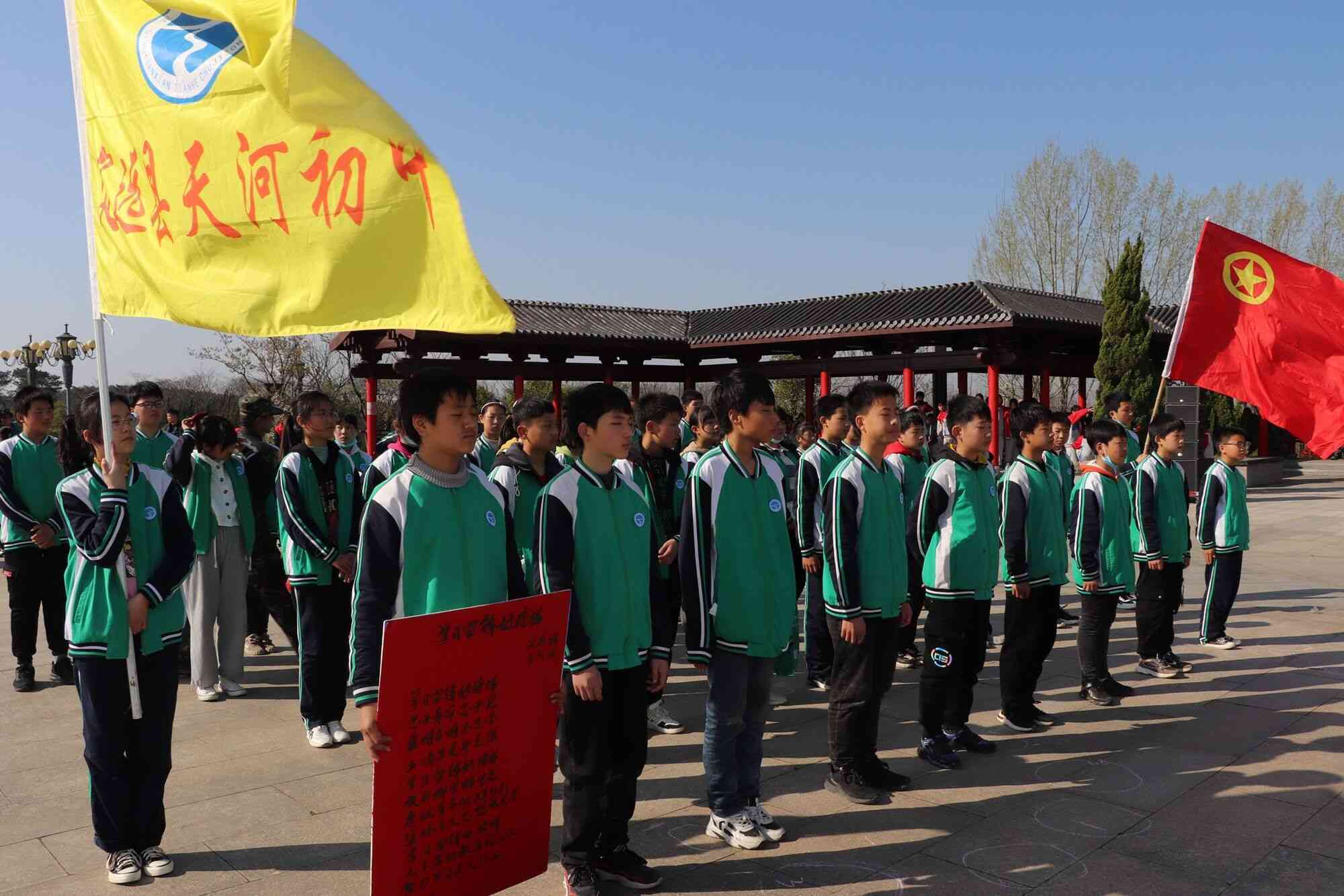 清明节前,定远县天河初中团委组织团员青年、少先队员开展线上祭英烈、云祭扫,线下赴藕塘烈士陵园扫墓活动。