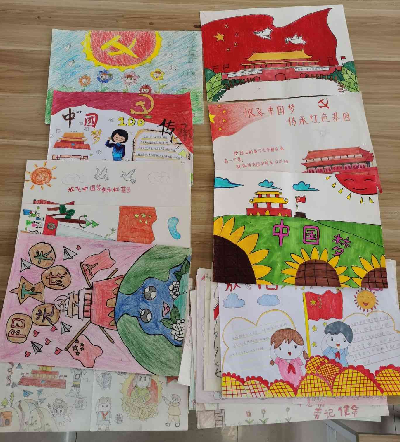 在学校的精心组织和各班级学生的积极参与下,一幅幅形式多样的绘画作品跃然纸上,绘画内容充分展示了他们沐浴党的阳光、幸福健康成长的精神风貌,表现出广大少年儿童对幸福生活的热爱,以及爱党、爱国、爱家的情怀。(审核:吴勇 图文:葛晓雪)