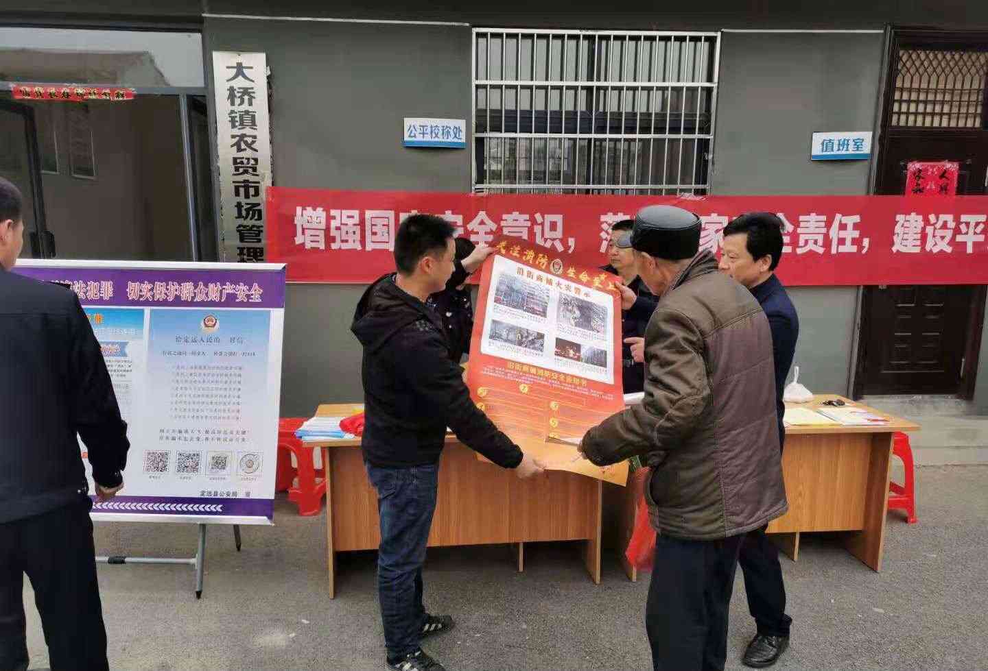 ~ 为进一步强化树立辖区公民国家安全意识,自觉关心、维护国家安全,以进一步弘扬宪法精神,加强国家安全法等法律知识宣传普及。4月15日上午,定远县大桥镇综治中心联合镇派出所、镇团委在农贸市场开展全民国家安全教育日宣传活动。