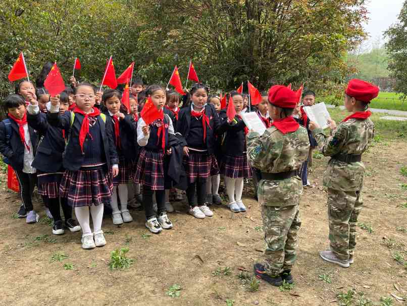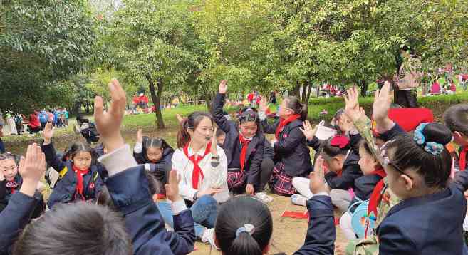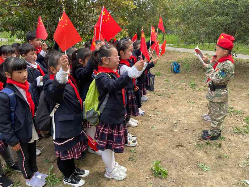 ~ 这次出游和以往不同,在老师的组织和帮助下,同学们坐在草地上,围在一起讲述红色革命故事。黄继光、邱少云、董存瑞……一个个爱革命英雄的故事激发了同学们的爱国之情。围绕着《百年光辉历程 全面建成小康》一书,两位“小红军”用生动的语言和感人的事例讲述了红军长征、志愿军抗美援朝、解放军保卫国防等革命军队的故事。最后在师生同唱《我和我的祖国》歌声中结束此次活动。