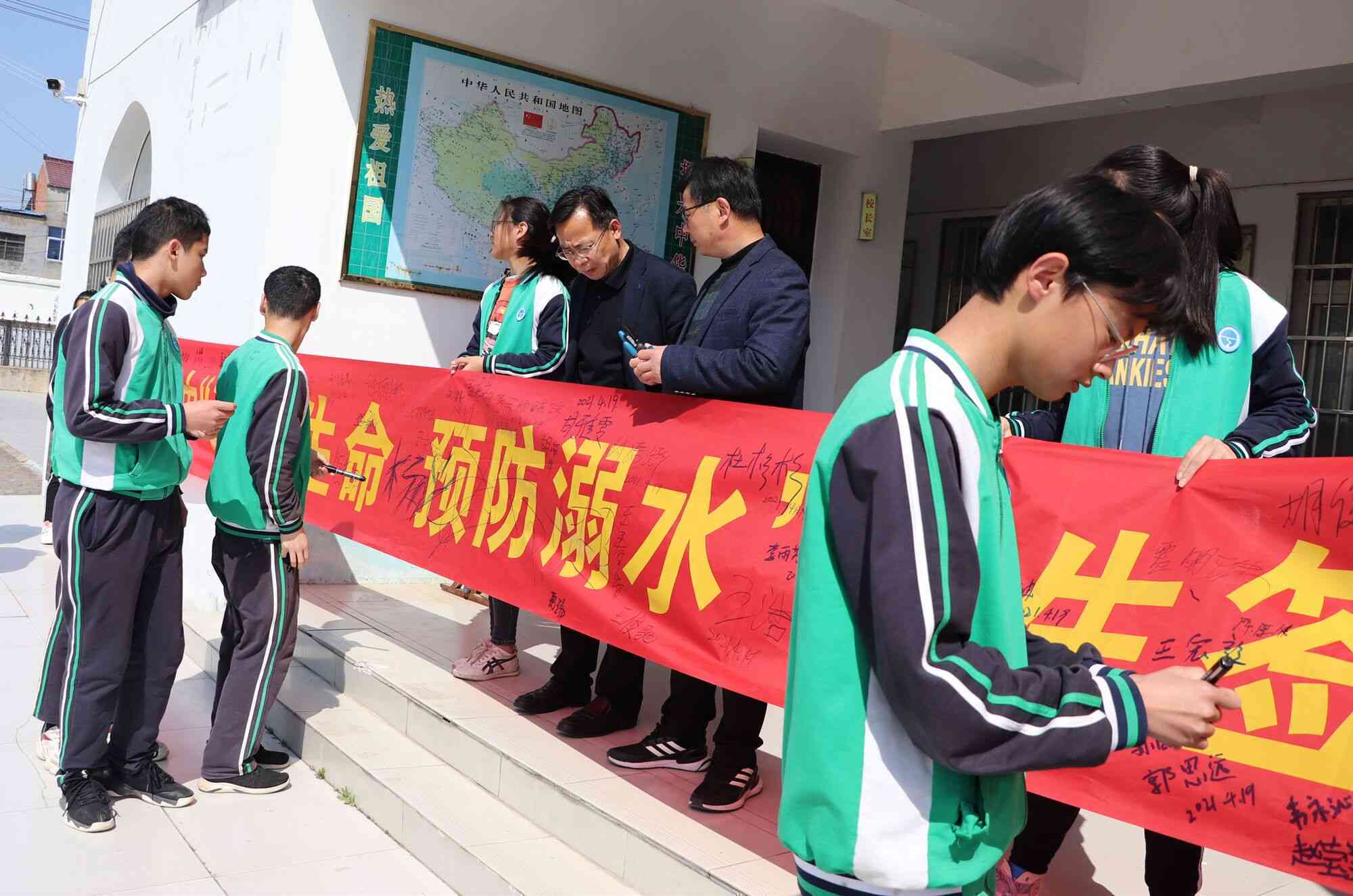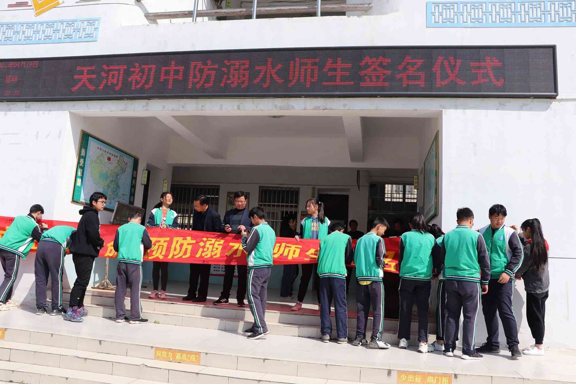 4月19日,定远县天河初中举行“珍爱生命 预防溺水”升国旗主题教育宣誓、签名活动,旨在让预防溺水意识在同学们的心里扎根,在头脑里留下烙印,自身熟知”七不两会”。