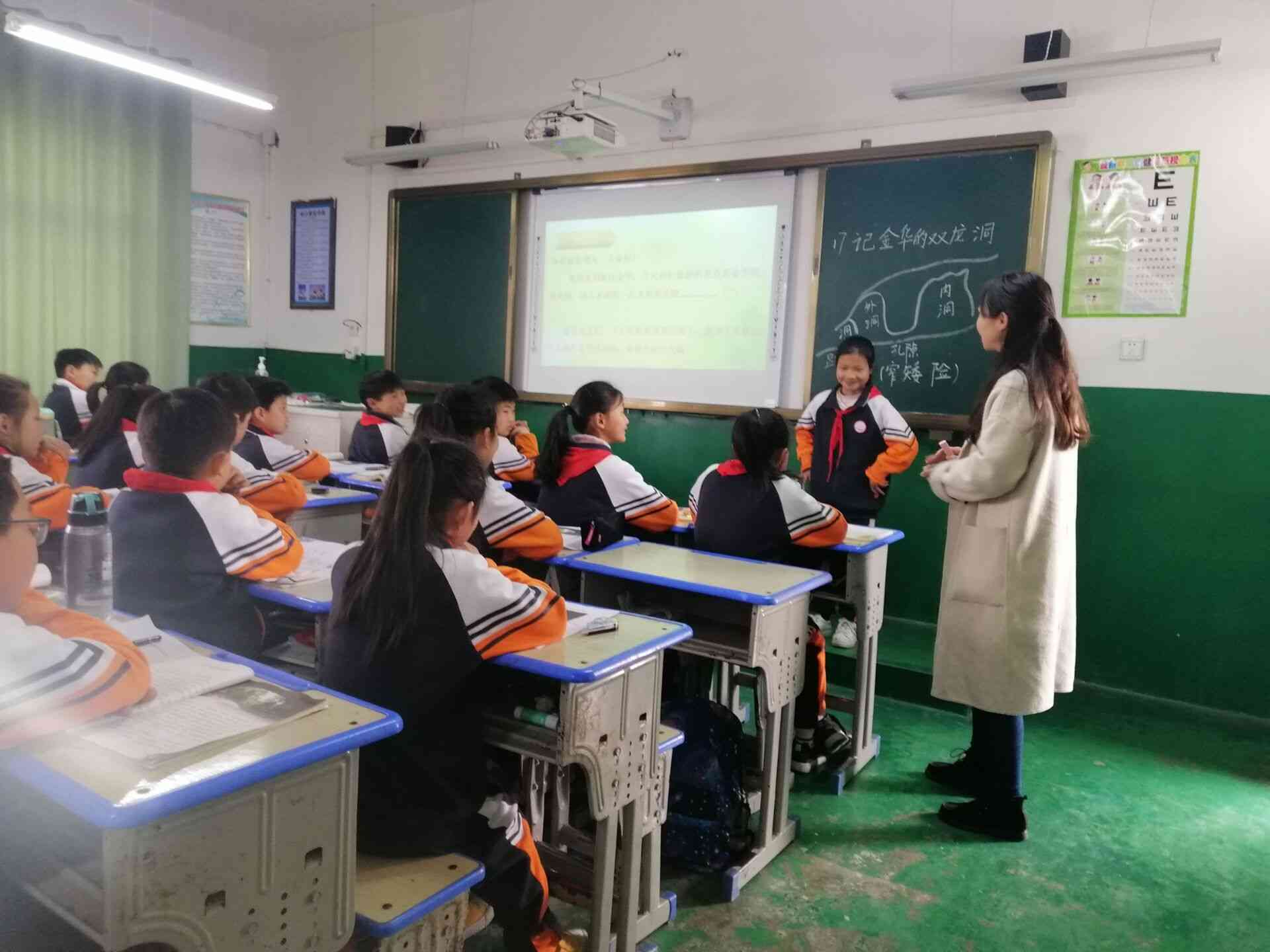 ~ 来自天河小学首席教师工作室的陈江林老师执教《记金华的双龙洞》,运用丰富的教学手段和精妙的教学技巧,不求大而全,只求美而真。通过设境体验,学生当场感受作者准确的语言表达及其令人身临其境的表达效果。以及“争当小导游”这一环节,体现出课堂教学中扎实落实“语文课程是一门语言文字运用综合性、实践性课程”的新课标理念,让孩子们在课堂上充分绽放自我。整节课师生互动、生生互动非常融洽。