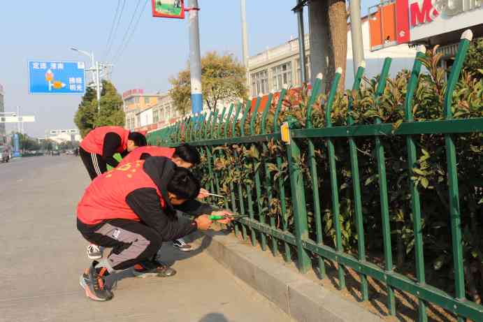 活动前,校团委书记李发宝给志愿者们作了动员讲话,并对成员进行明确分工,随后学生志愿者们统一着志愿者标服,携带保洁工具,在政教处主任董世刚带领下,走进定滁路责任区开始对马路两侧绿化带进行清扫。活动中,学生志愿者们不怕苦、不怕脏,不放过任何清洁死角,对临街路面、居民生活垃圾堆放点、沿街绿化带以及墙壁“牛皮癣”小广告进行了全面认真地打扫清理。有的扫,有的铲,有的捡垃圾,有的倒垃圾,一片繁忙,经过近1个小时的紧张清扫,省道311池河中学段500多米的公路两侧,环境面貌焕然一新。活动后,志愿者们虽满头大汗、手酸脚痛,但大家纷纷表示:在国际志愿者日当天,能走出校门,参与社区服务,为美化池河出一份力,感觉很光荣也很值得。