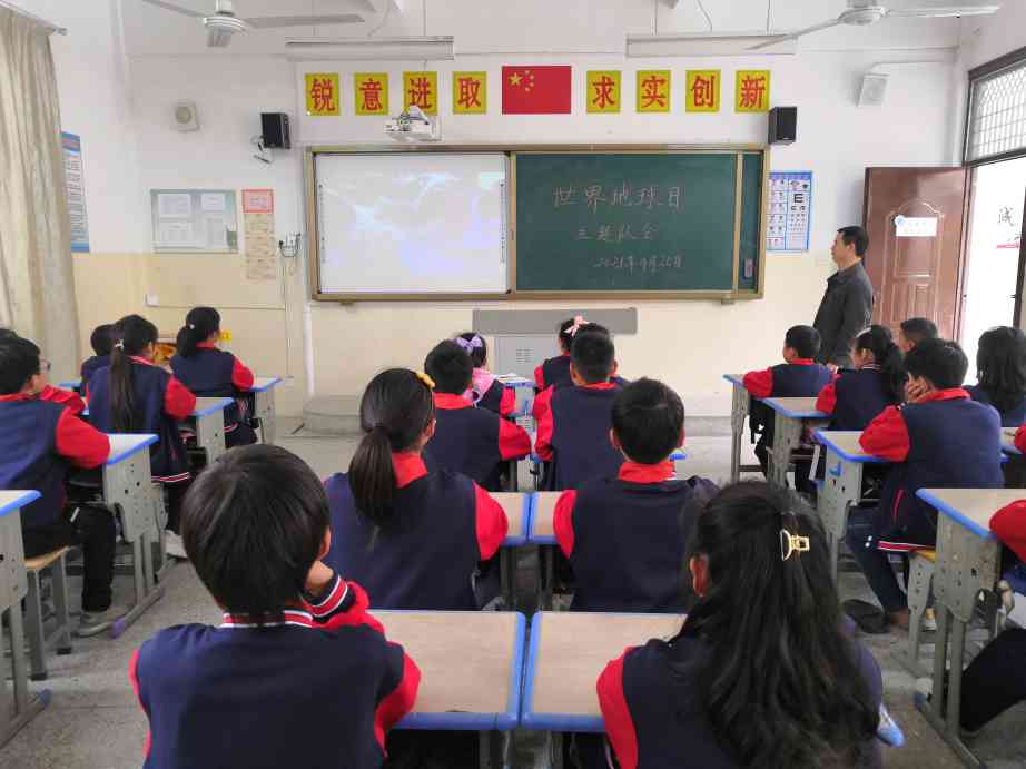 ~ 班会课上,老师向同学们宣讲保护地球的有关知识,并观看了保护地球的宣传视频。接着提出倡议,希望同学们积极行动起来,从自身做起,从点滴小事做起,做一名爱护环境、节约资源、保护地球母亲的小卫士。班会结束后,同学们来到操场捡拾垃圾,并在清理干净的操场上手拉手围成地球的形状,表示出携手保护地球的决心。