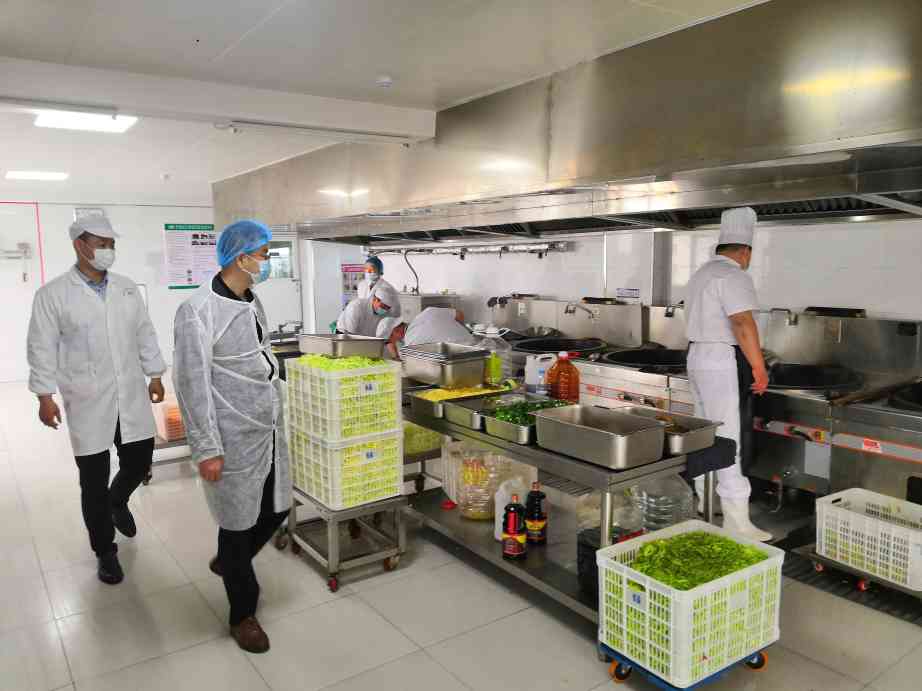~ 在检查的过程中,配餐公司负责人详细介绍了每个功能车间的工作流程和具体要求。同时,卢德伟副校长也提出了一些具体的建议,并强调:“配餐工作,任何一个细节都不能有疏漏,严防病从口入,确保师生的饮食安全。”