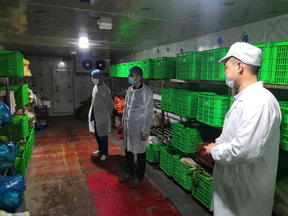 ~ 4月21日,滁州五中副校长卢德伟带队,总务副主任和学校食品安全员随行,再次来到倍盈餐饮管理有限公司的配餐车间,对其仓库、冷库、加工(洗菜和切菜)、厨房以及配餐装盒等车间进行了全面、细致的检查,进一步提高学校食品安全保障能力和水平。