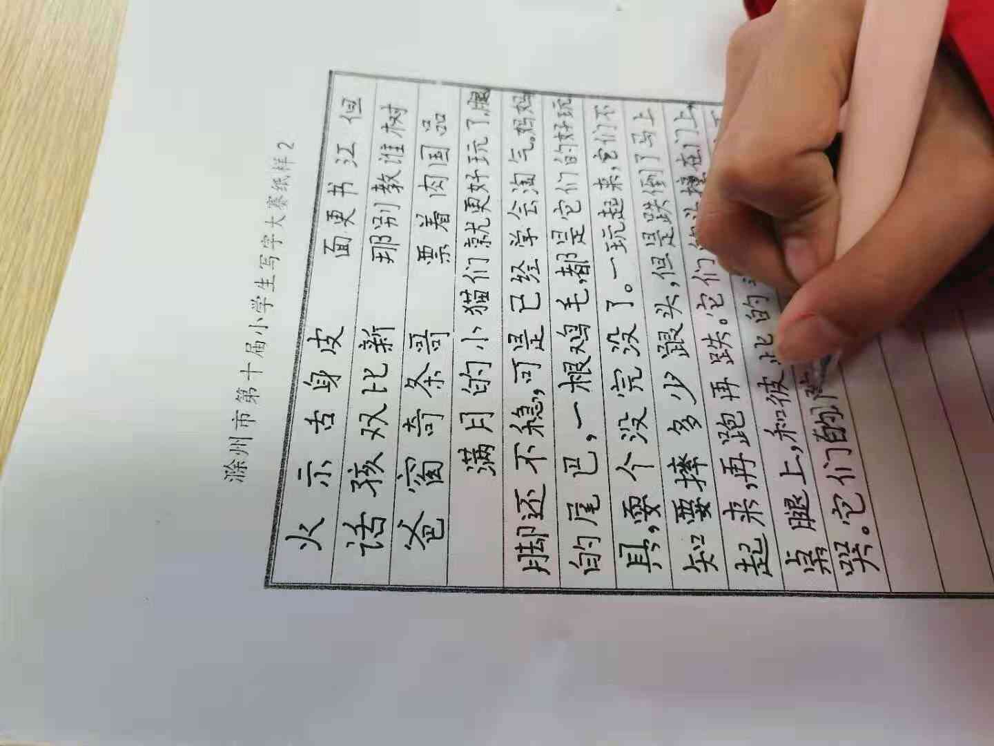 4月22日,定远县新区实验小学组织二、四年级22个班级1000余人参加滁州市第十届小学生写字大赛。