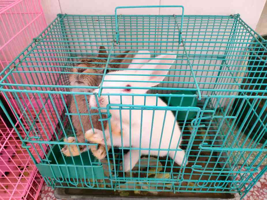 养殖区里的小兔子吃着小朋友们带来的蔬菜!