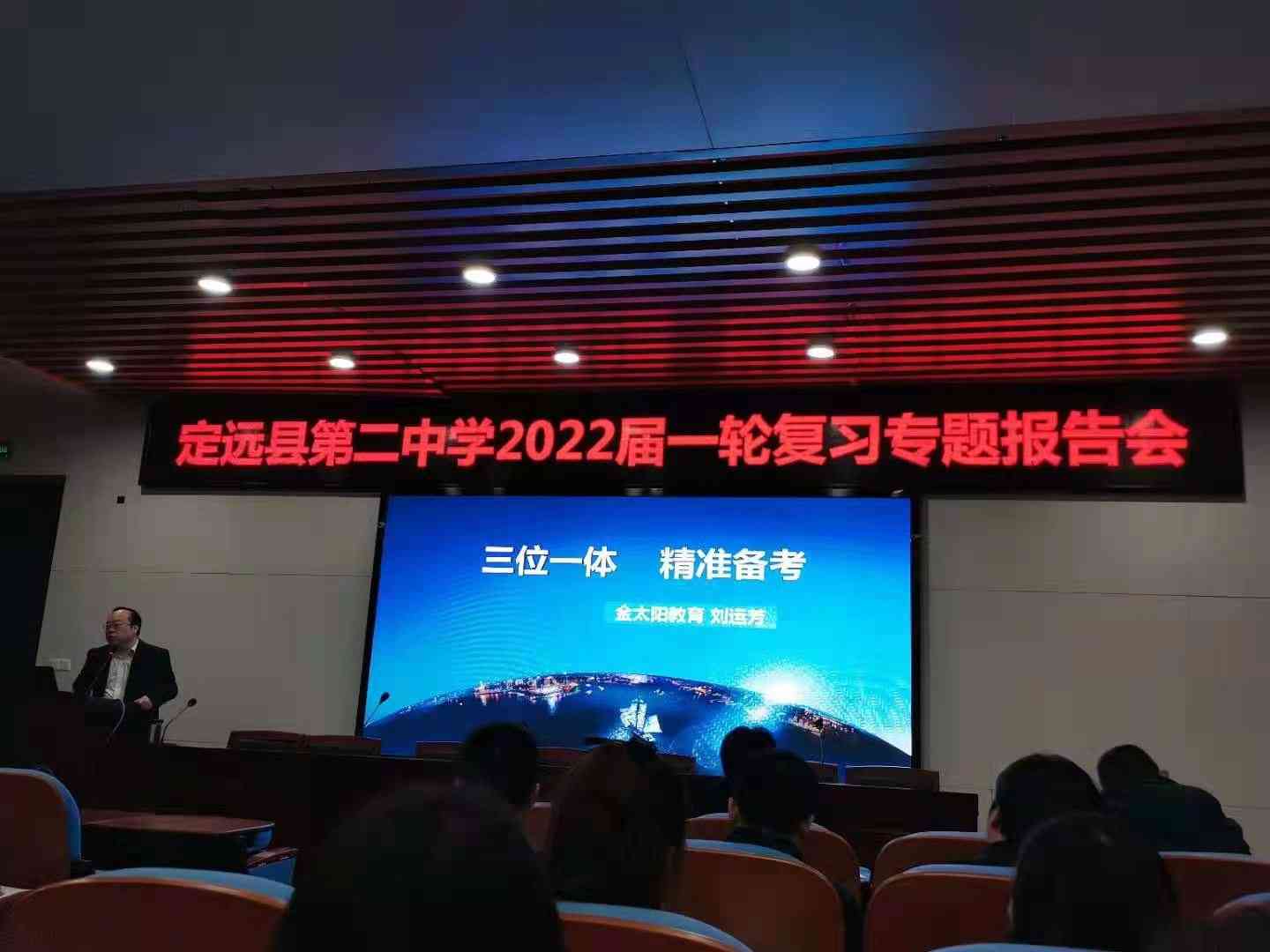 ~ 为组织科学、精准、高效备考,4月25日,定远二中召开高二年级备战高考一轮复习专题报告会,特邀金太阳教育集团高级研究员、课程与教学论专家刘运芳老师为全体教师作精彩报告。校党委全体成员和高二全体教师全程听取讲座。
