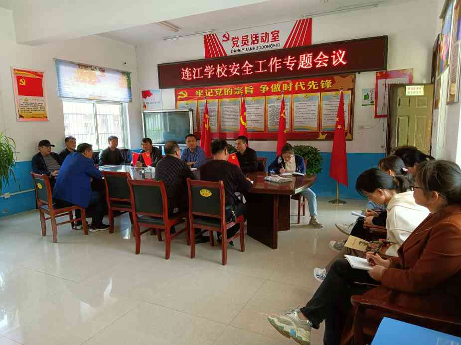 ~ 4月29日,定远县连江学校召开安全工作专题会议,该校校长周成立主持会议。
